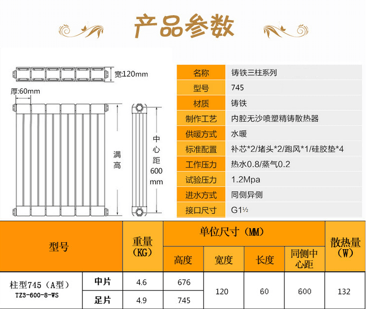 橢三柱745,橢三柱745暖氣片,色虎APP下载安装橢三柱745暖氣片找山西省清徐縣色虎APP下载安装暖氣片有限公司專注生產暖氣片,工程暖氣片,鑄鐵暖氣片,是一個集科研、鑄造、加工、銷售為一體的工程暖氣片廠家